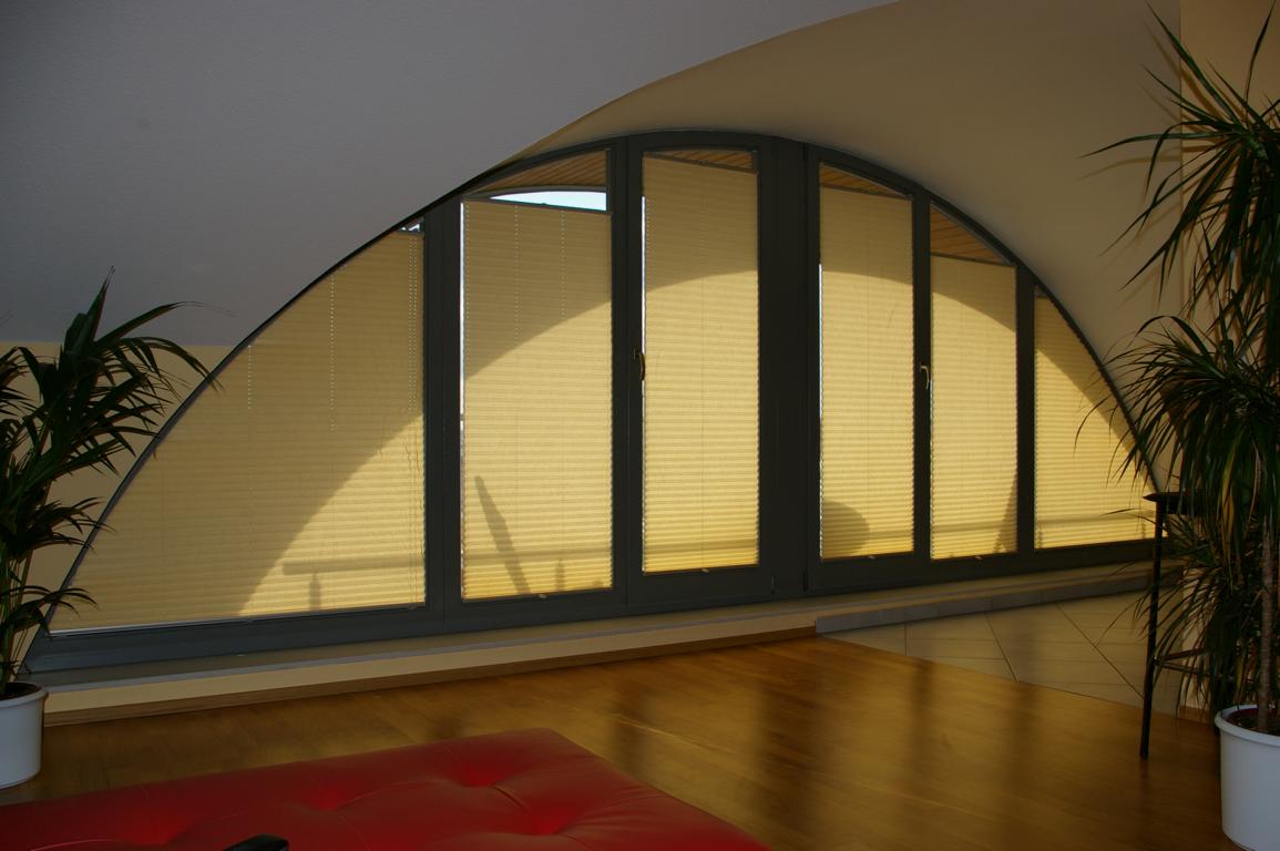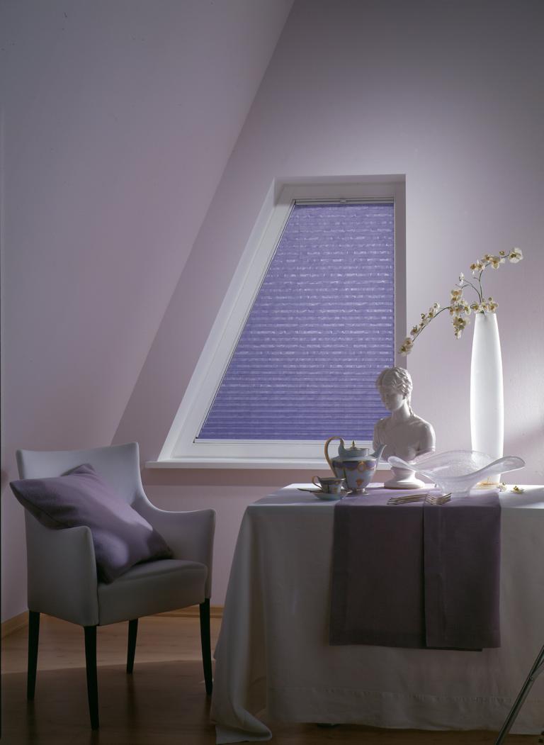 Mit Plissees kann man bei der Gestaltung aus dem Vollen schöpfen. Dank der individuellen Fertigungstechnik, auch an Fenstern mit Sonderformen, wie Giebel- oder Rundfenster. Und mit der innovativen Schlaufenschnur-Technik hat selbst Schwerkraft keine Chance. Die Falten dieses Plissees behalten dauerhaft ihre Form.